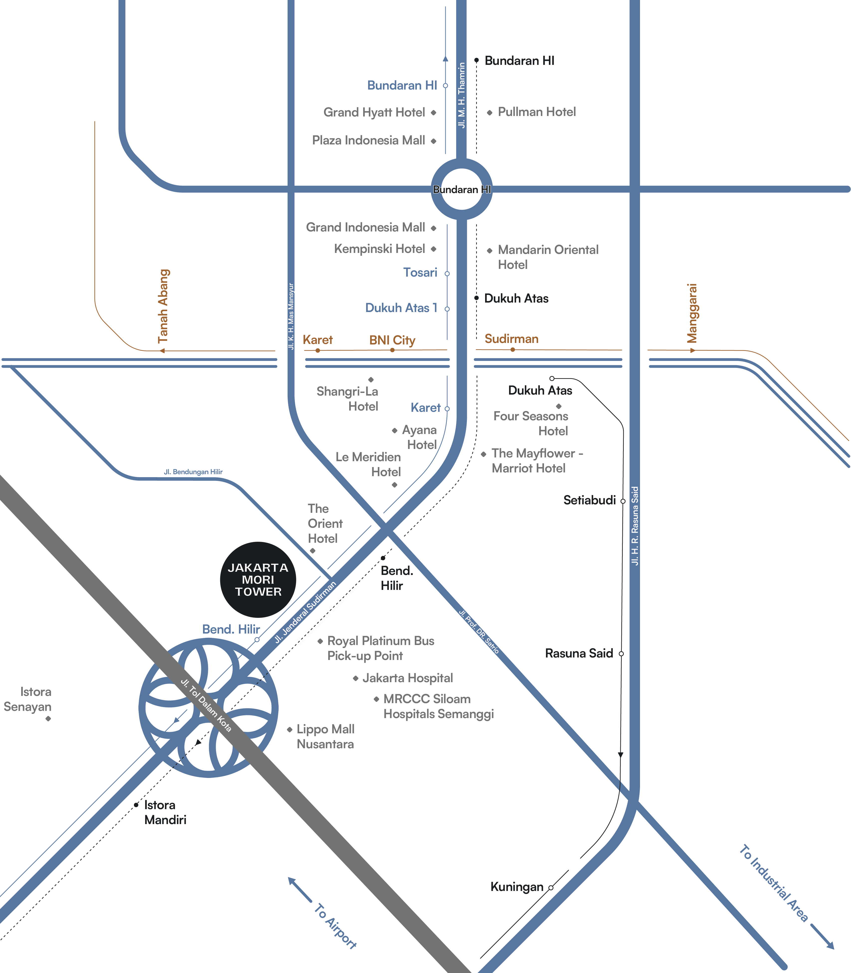 Located at the heart of Jakarta’s central business district, the building enjoys direct access to major streets, embassies, office towers and Grade A commercial buildings. The area is also exceptionally well-served by public transportation.